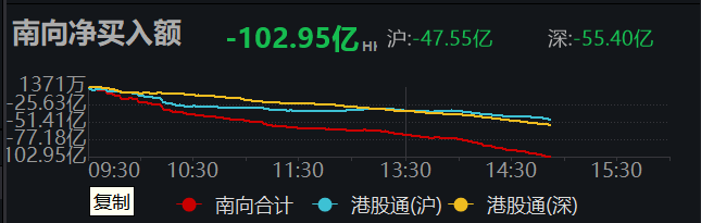 上证报中国证券网讯 5月12日14时52分,南向资金净卖出超100亿港元。